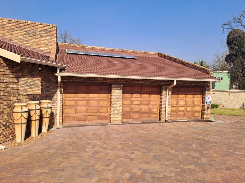 Flexible family home with built-in business potential — nine garages pre-planned into three flatlets, pool, lapa braai, borehole irrigation, private lounge and four bedrooms (main en-suite).