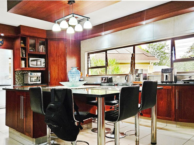 Entertainer’s haven on 2,000 m² with built-in braai, bar and jacuzzi, plus self-contained 2‑bed dwelling; open-plan kitchen, study and ample parking. Main house 4 beds, 3 baths.