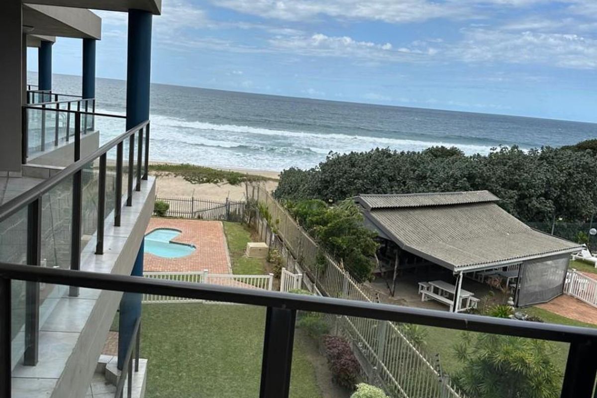 Relaxed beachside living in Manaba Beach, Margate — top-floor apartment with sunset patio and built-in braai, pool access, and two bedrooms, two bathrooms with secure garage.