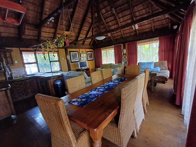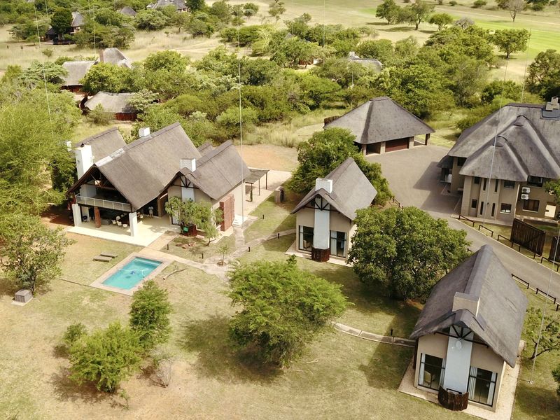 Bushveld retreat on Zebula Golf Estate—next to the 18th hole with roaming wildlife, large entertainment lapa with bar and splash pool; nine-bedroom layout ideal for family or rental.