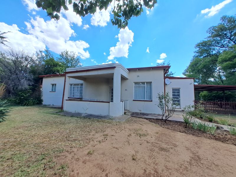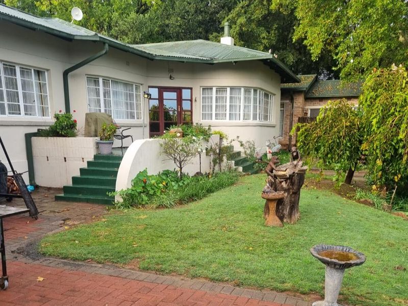 Country retreat for relaxed living and entertaining on a large erf, lush garden with greenhouse and borehole, pool and covered patio; three-bedroom main house plus attached one-bedroom flat.