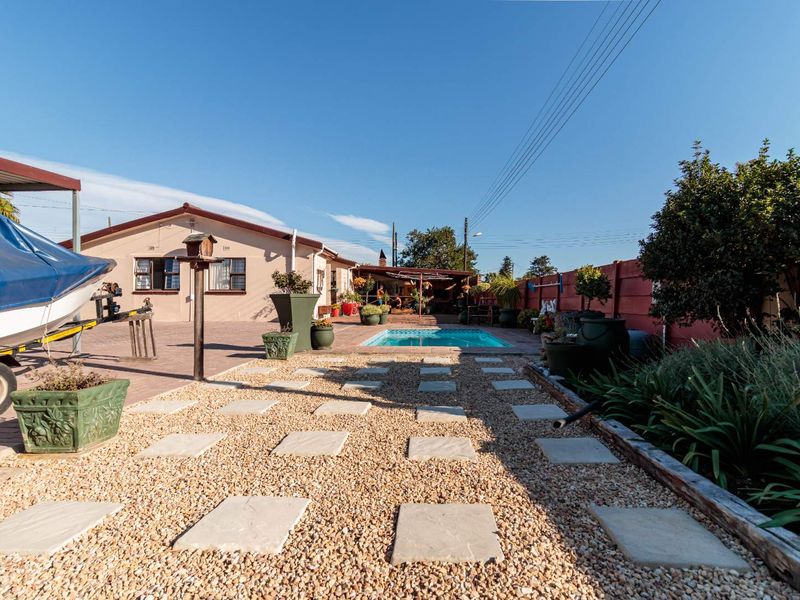 Entertain effortlessly in family-friendly Manor Heights, Despatch, walking distance to Frans Conradie Primary and shops. Indoor TV/braai room with built-in bar flows to undercover stoep, garden and pool. Four bedrooms.