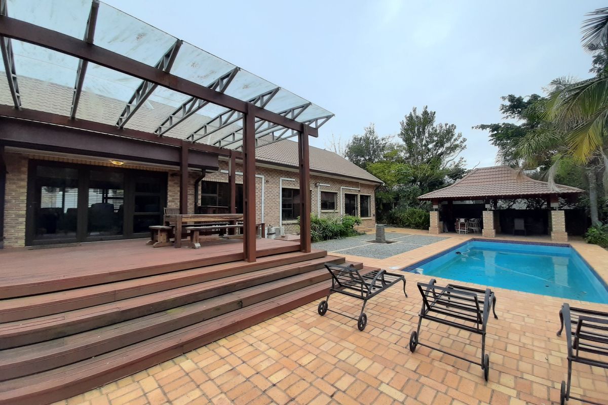 The outdoor space is just as impressive, with expansive grounds, a large swimming pool with deck, and a covered braai area — perfect for entertaining while soaking in the tranquil surroundings.