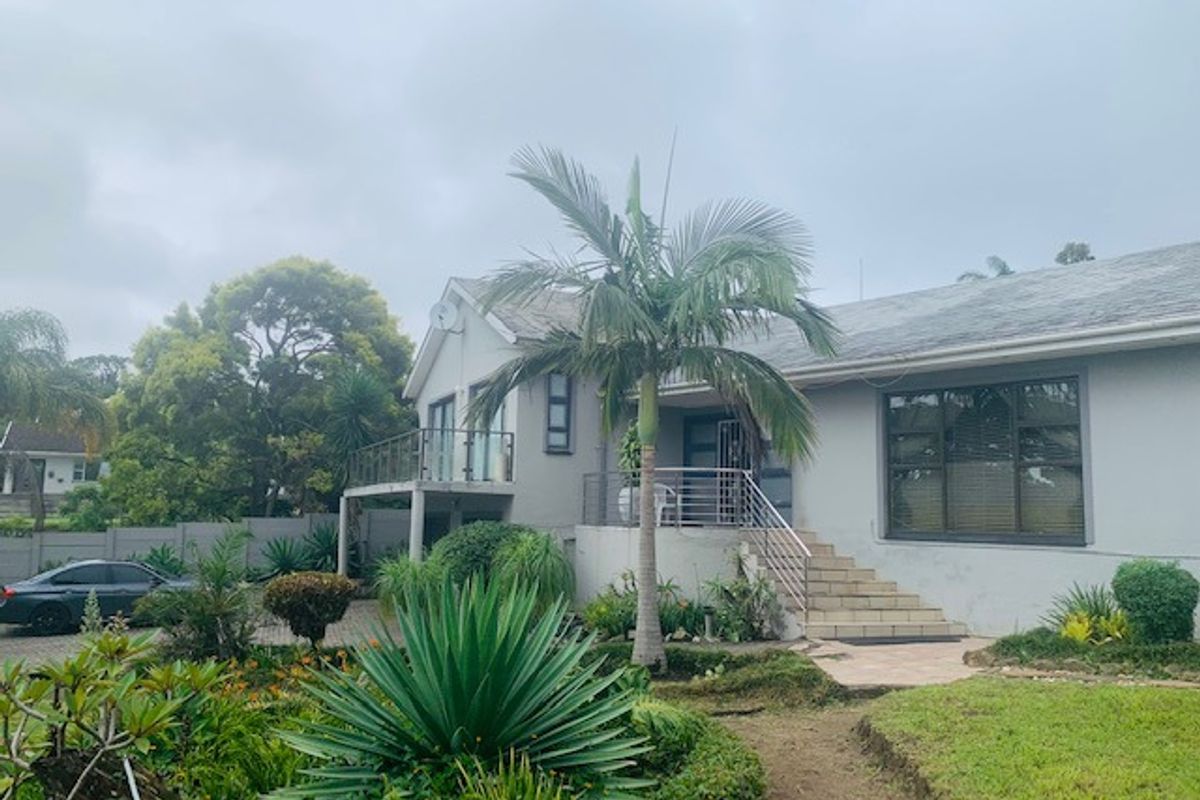 Quiet family lifestyle near top schools and Amalinda Shopping, large corner yard with fish pond and log fireplace, five income flats, five beds, 4.5 baths, four garages.