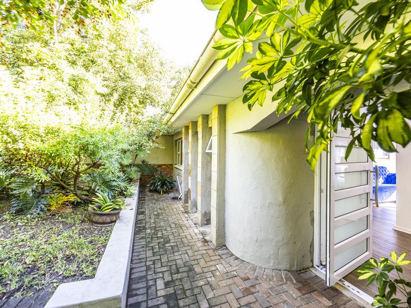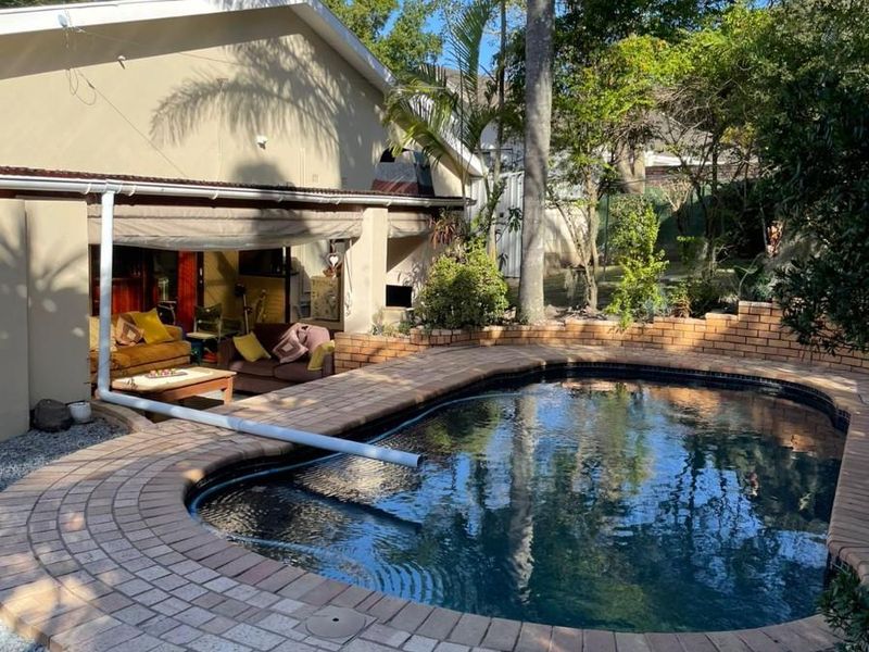 Entertainer's paradise with tropical pool, built-in bar and braai — quiet, leafy setting perfect for family life; includes 3 beds, 2 baths, maid quarters and 1‑bed flatlet, plus parking for six.