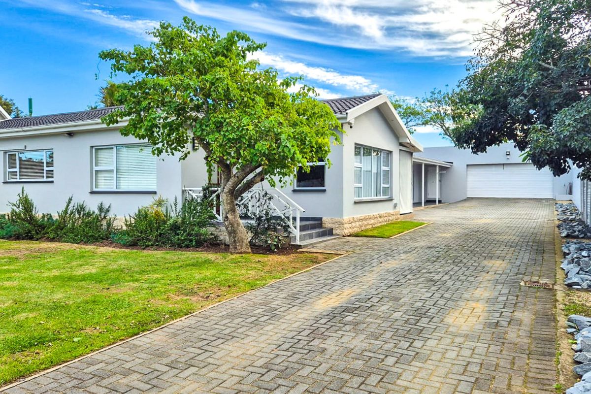 Relaxed coastal living in sought-after Gonubie, walking distance to schools and beach; versatile single-level home with covered entertaining patio, self-contained flatlet, four bedrooms, 3 baths and four-car garage.