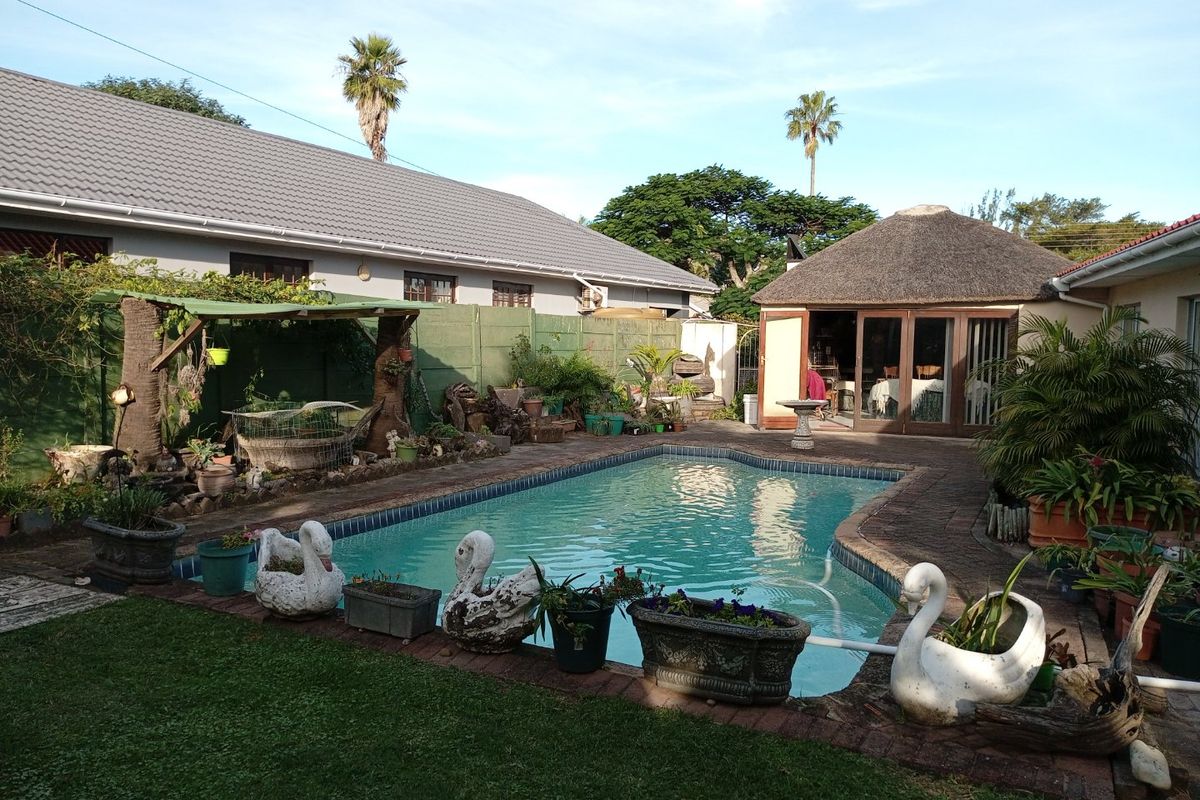 Set in a lush, beautifully maintained garden, this home features a sparkling pool and a thatched entertainment area with a built-in braai—perfect for hosting guests and enjoying the warm coastal climate.