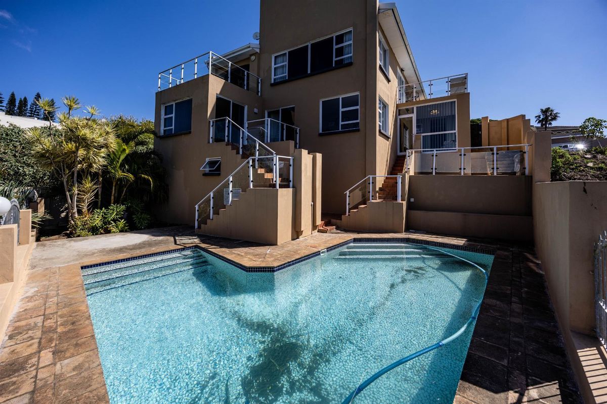 Elevated Gonubie Hills family retreat with sweeping river and valley views, open-plan living centered on a granite kitchen, pool and entertainment area; five bedrooms, five bathrooms, double garage.