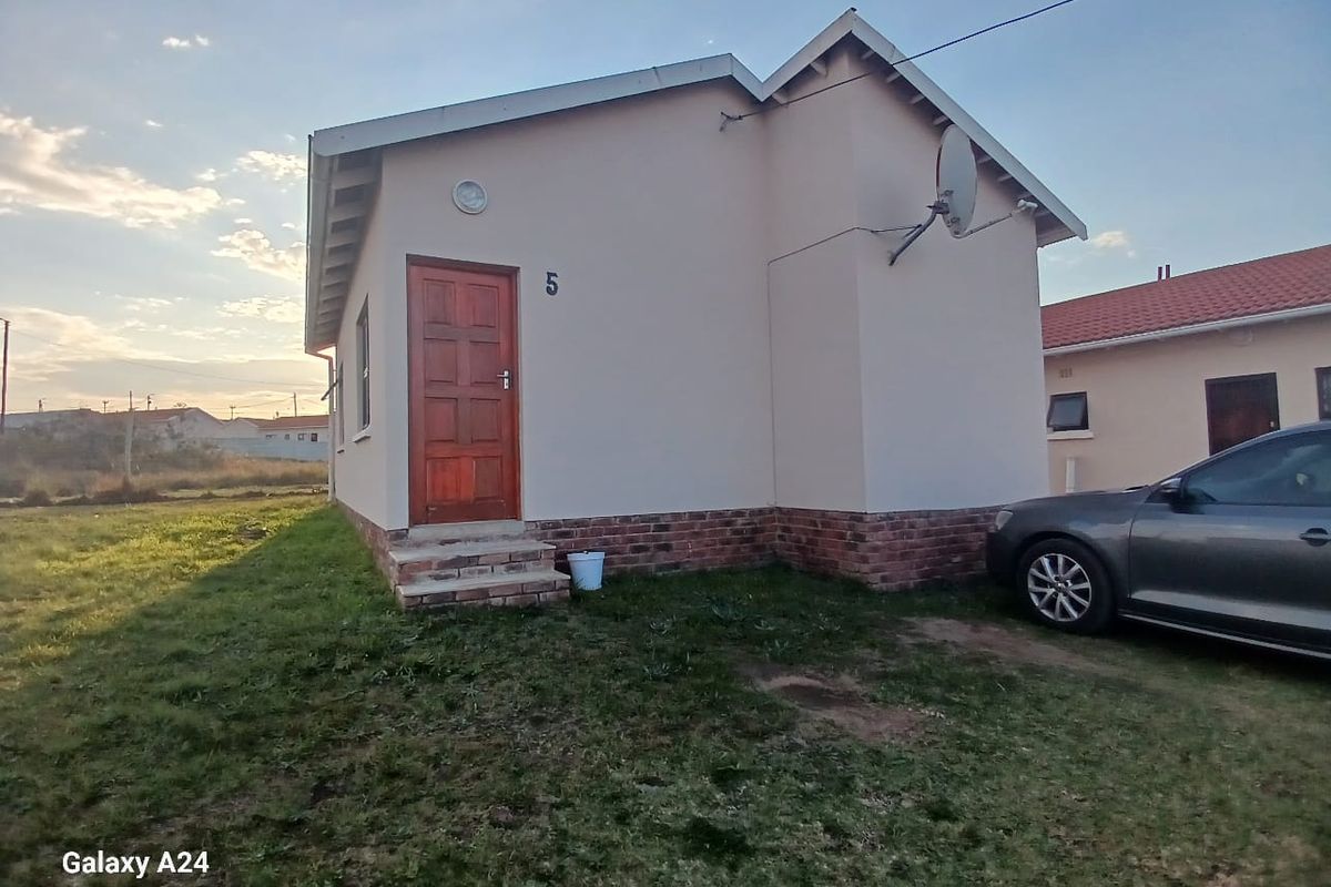 Airport-adjacent living 2km from East London Airport and Cove Rock in Riverwood Eco Estate; controlled access and armed response, safe streets for kids — two bedrooms, one bath, three covered parking.