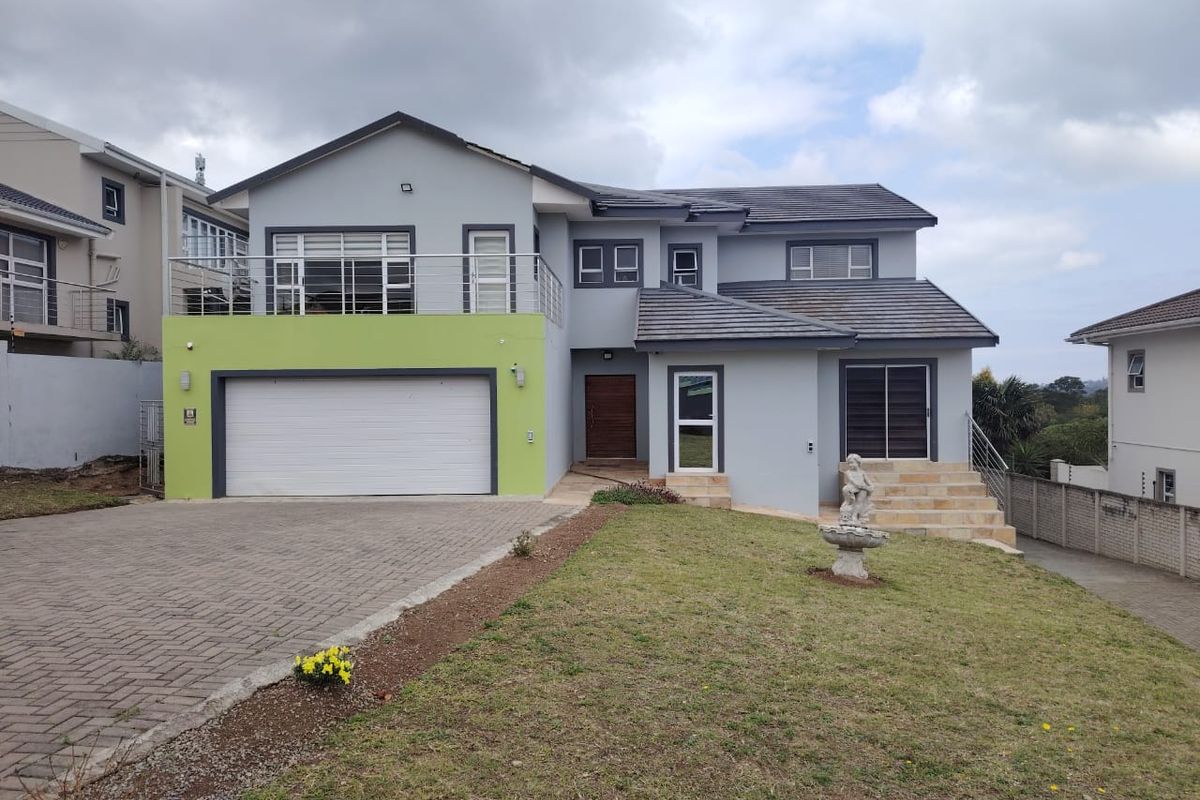 Elevated family home in Nahoon Valley Park with sweeping valley views, four lounges and upstairs balcony, kitchen, walled yard with jungle gym — 4 beds, 3 baths, double garage.