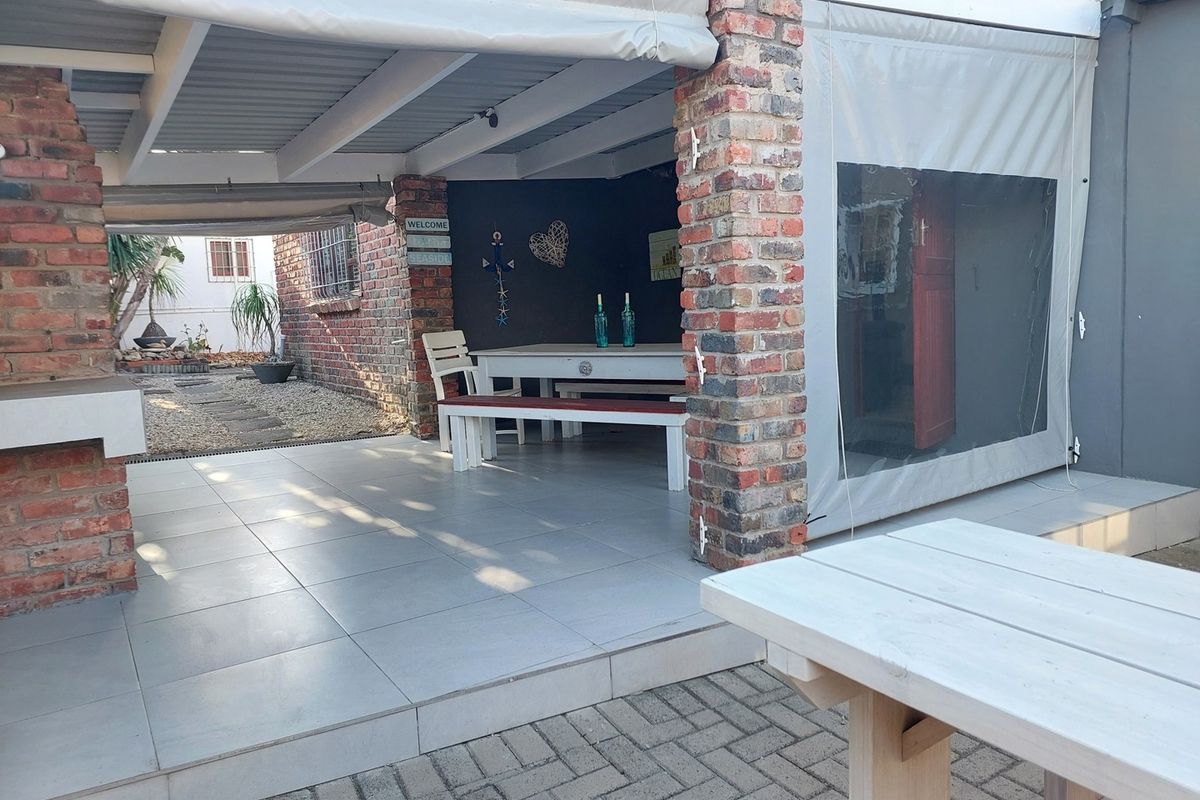 Relax in coastal Queensberry Bay living on the East Coast, ideal for family gatherings with private undercover entertainment area and built-in braai with drop-down blinds. Three bedrooms, 1.5 baths.