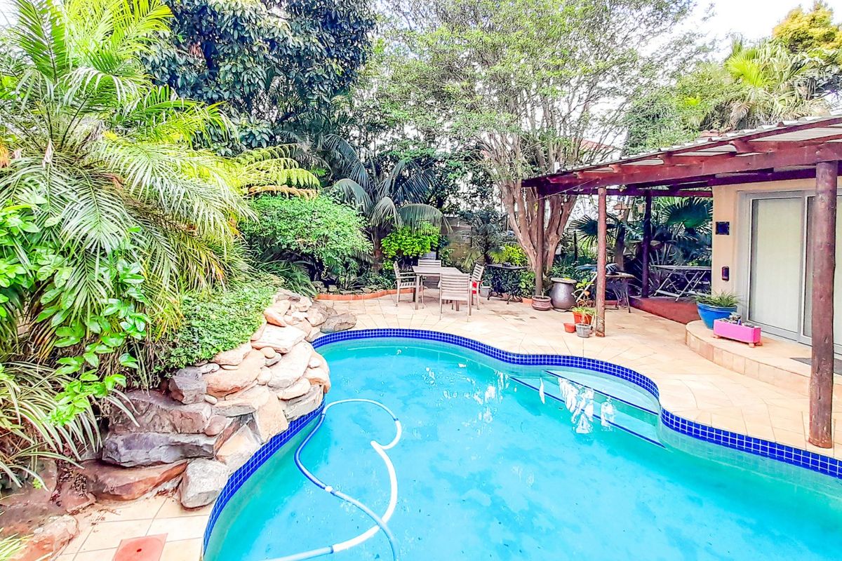 Step out from the dining room and you’ll find three exits. One leads, as expected, directly to the kitchen, the other to a deck and a paved patio shaded by a grapevine-style canopy still coming into its own for the summer season. The bird life must be magnificent here as would be a sundowner on a hot summer evening. The other takes you through a multi-purpose room (currently moonlighting as an office/gym/lounge hybrid) and out through fold back stack doors to a curvy, landscaped pool. It’s framed by natural plantings and a fishpond that adds a touch of Zen to the backyard. A paved walkway connects it all, creating a flow that’s both functional and botanically poetic.