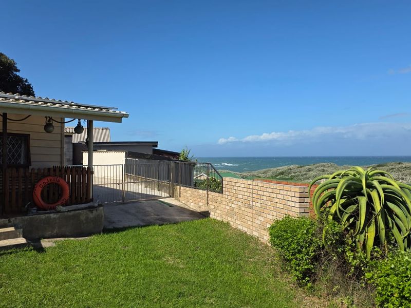 Seaside retreat in Seavale, Eastern Cape — relaxed coastal living with large windows framing ocean views and a manicured garden. Two bedrooms, one bathroom.