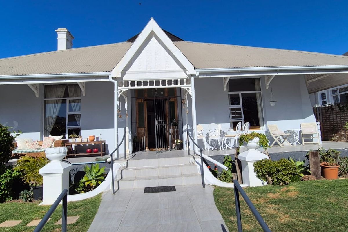 Peaceful, secure living near the provincial hospital with established landscaped garden and sunny farmhouse stoep; open-plan family home with income-potential flatlet — four beds, three baths, one garage.