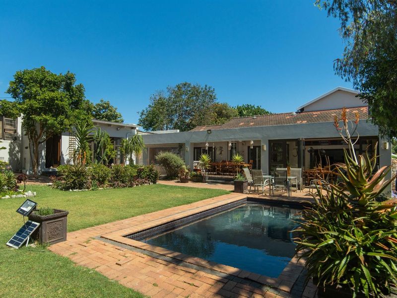 Entertainer's haven in Walmer—secluded, leafy suburb living with sunlit open-plan spaces flowing to a landscaped garden and sparkling pool; includes five bedrooms, four baths and double garage.