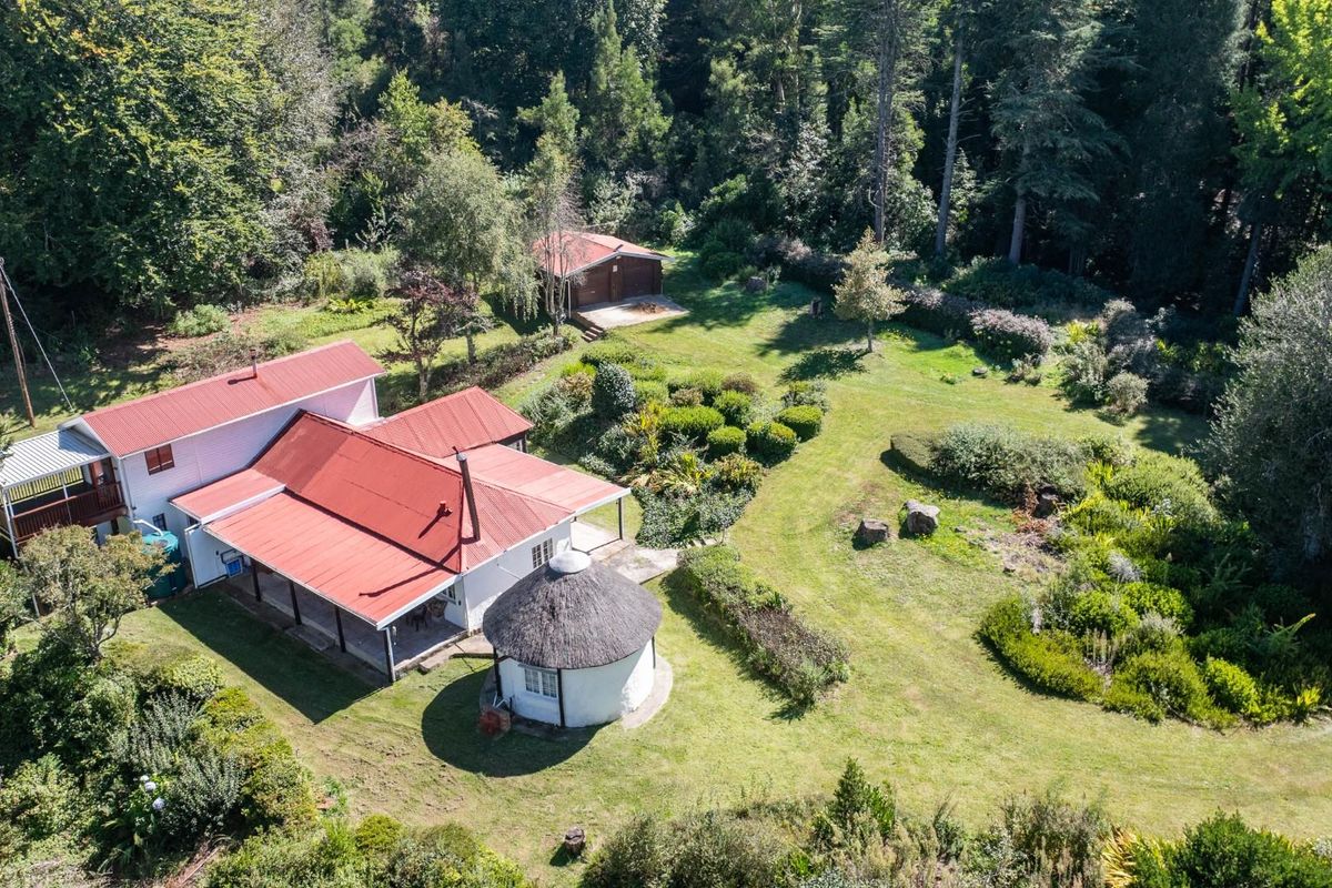 Escape to Hogsback tranquility with mature trees, abundant wildlife and four private waterfalls; soulful dual-living home with rondavel, covered patio and five bedrooms (three baths), sold furnished.