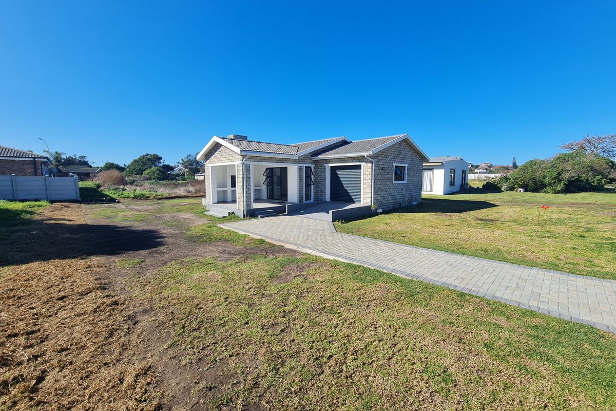 Comprising 3 bedrooms, 2 bathrooms (mes), lounge/dining areas and open-plan kitchen with gas hob, covered built-in braai and an extra-large single garage with laundry facilities.