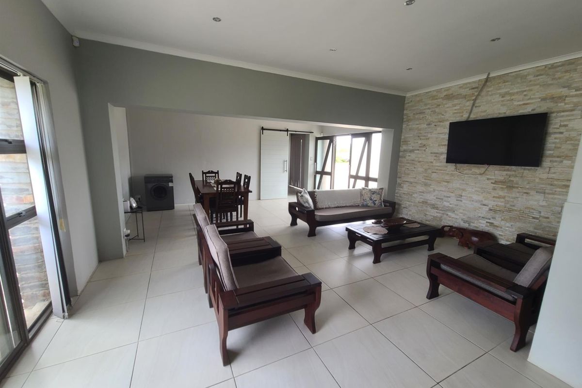 This home is situated within walking distance to the beach and the Zeekoeiriver mouth and estuary, under 500m by foot. It consists of 4 bedrooms, all with built-in cupboards, 2 bathrooms with the main being en-suite. There is also a separate guest loo. An added bonus for the stunning summer months is that 2 of the bedrooms have air conditioning. The open-plan lounge-dining area runs through into a modern kitchen of which the granite tops and tiling are recently renovated. The back yard is lush lawn and is enclosed. There is also an outside shower for those "straight from the beach" days, as well as a outer storeroom.