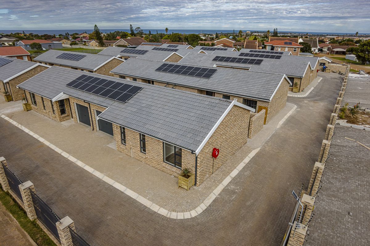 Embrace relaxed Jeffreys Bay living steps from famed surf breaks and shops; newly completed face-brick apartment with full off-grid system, quartz kitchen, one-bedroom, one-bathroom and parking.