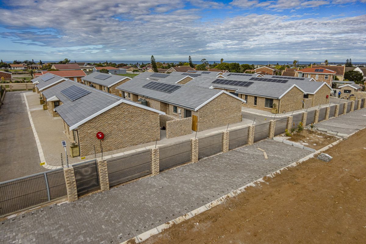 Coastal, lock-up-and-go living in Jeffreys Bay—steps from beaches and surf culture. One-bedroom unit with modern gas kitchen, solar system and water tank; carport included.