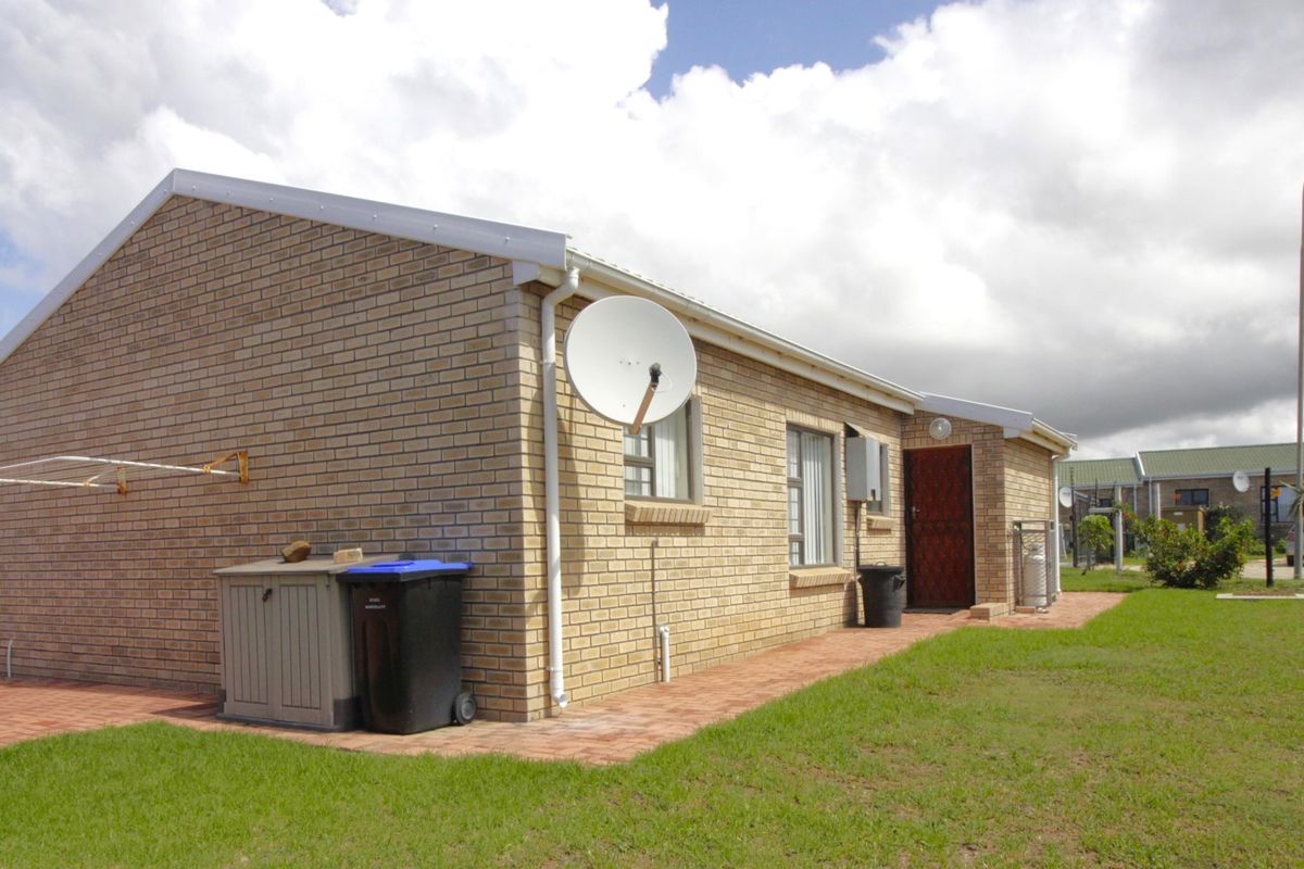 Effortless, secure lock-up-and-go living in Garanzia Villas, Jeffreys Bay — close to shops and beaches, with a private green lawn, open-plan kitchen, one bedroom and single garage.