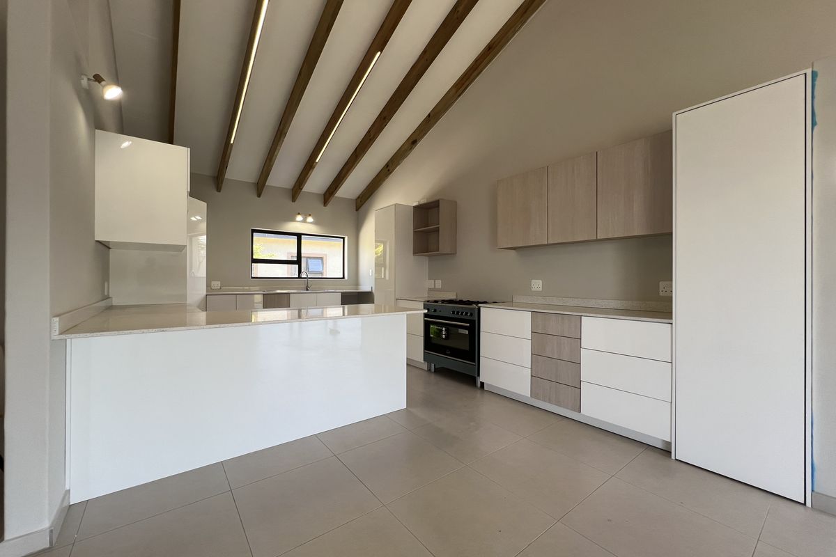 Beautiful high ceilings with exposed wooden rafters, open plan kitchen, lounge and dining area. Modern kitchen cupboards with fold-in doors. Extra large garage allowing SUV with rooftop top to enter.