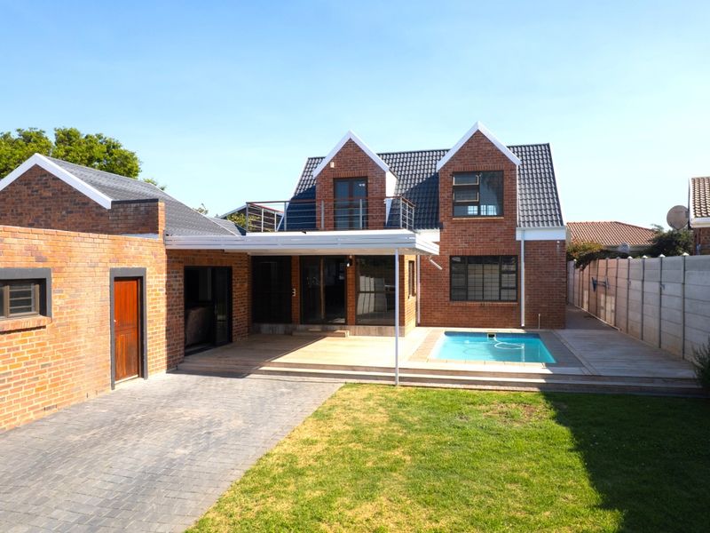 Relaxed family living in a quiet neighbourhood with an entertainment room featuring a built-in braai, private swimming pool, four bedrooms, three bathrooms and double garage.