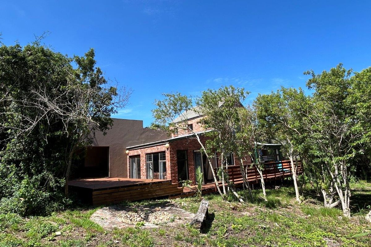 Live coastal tranquillity in Jeffreys Bay — minutes from famous surf breaks and shops, with a covered patio and indoor braai overlooking tranquil kloof forest; four bedrooms, three baths.