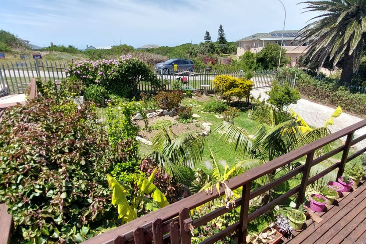Step into the braai room with a built-in braai, leading onto a large wooden deck that overlooks a beautifully maintained garden, ideal for relaxed coastal living.