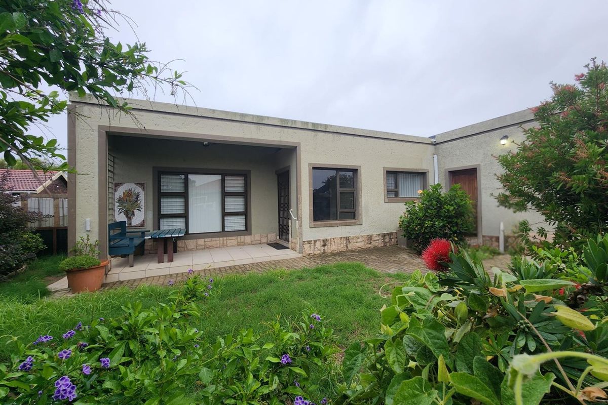 Coastal living steps from beaches and surf culture in Jeffreys Bay, with expansive garden for entertaining and four garages plus storeroom — three bedrooms, two bathrooms, pet-friendly.