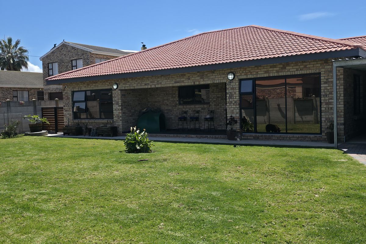 Coastal family living in Jeffreys Bay, minutes from beaches and surf culture; open-plan layout with modern kitchen, built-in braai, large garden and double garage — three bedrooms, two baths.