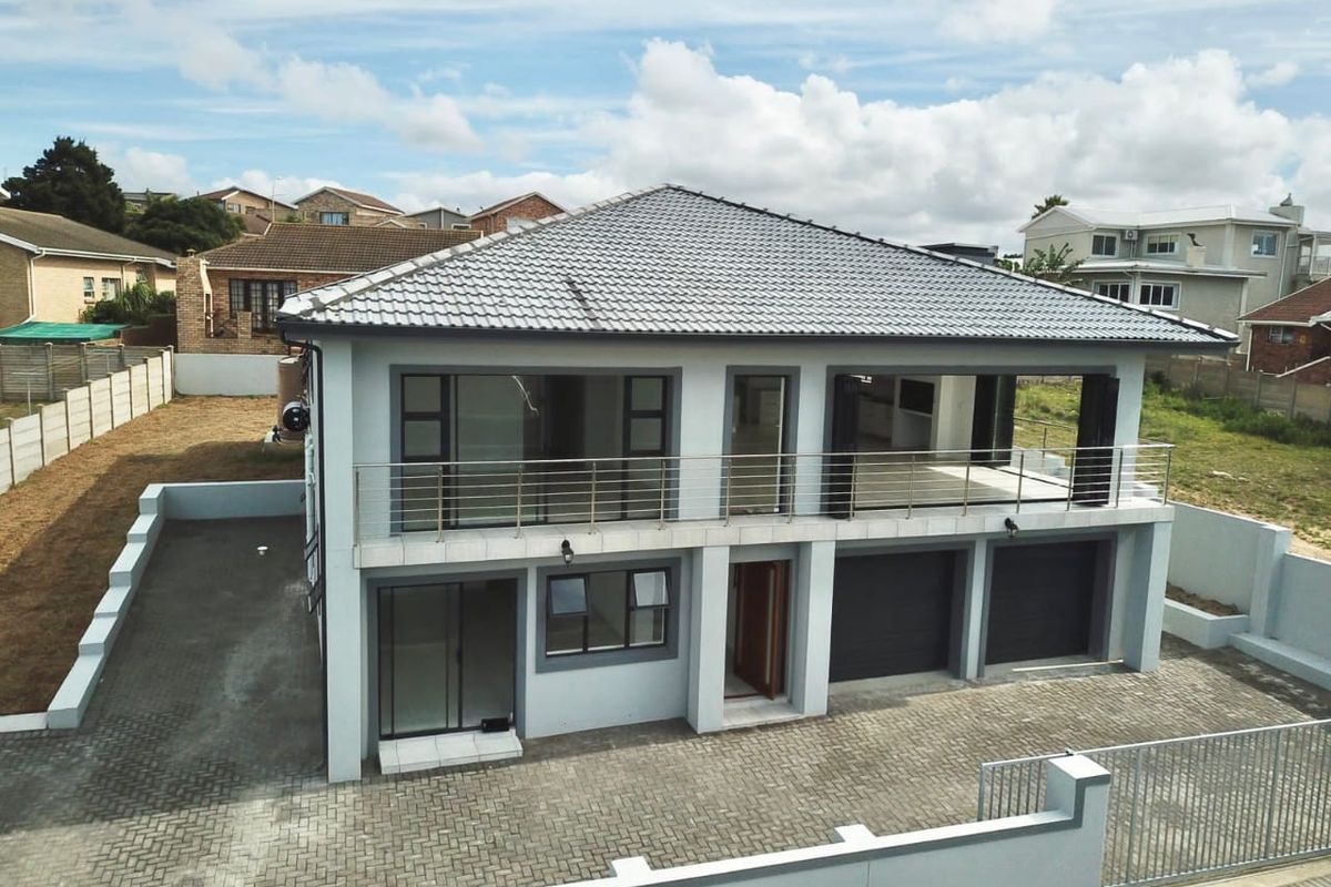 Coastal living steps from Jeffreys Bay beaches and surf breaks, offering distant sea views and an enclosed braai with stacker doors to a sunny balcony; five beds, double garage.