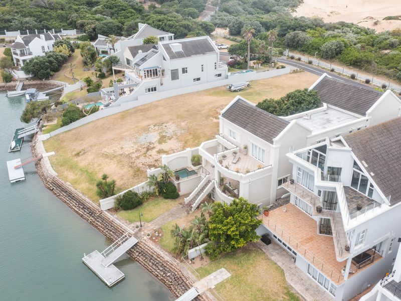 Waterside lifestyle on Port Alfred’s Royal Alfred Marina, riverfront entertaining with private jetty and panoramic Kowie River views; separate apartment, multiple garages, six bedrooms.