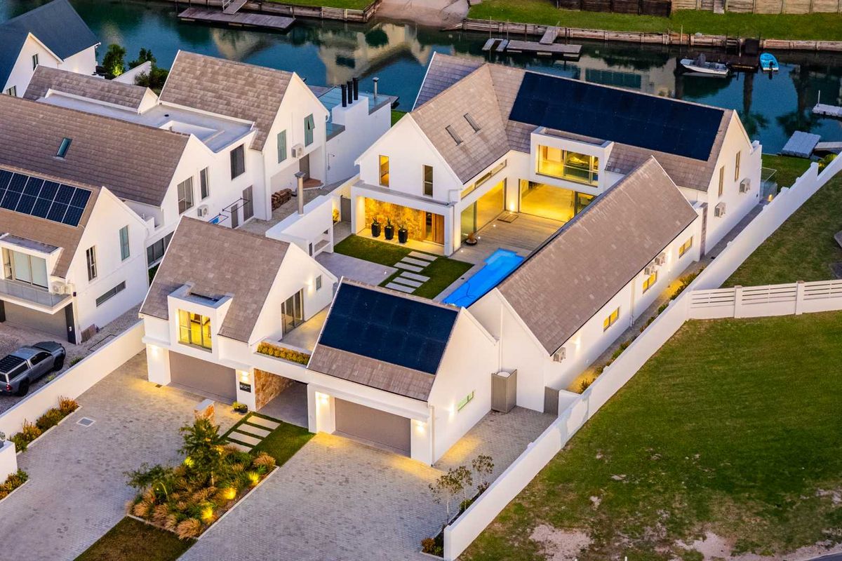 Located on the tranquil canals of St Francis Bay, this exceptional property blends striking design with full off-grid functionality. Offering 6 en suite bedrooms, a separate flatlet, multiple entertainment areas, and seamless indoor-outdoor flow, it is a rare find for the modern coastal buyer.
