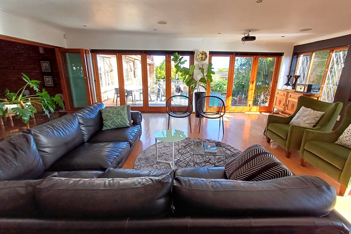 Enjoy multiple living areas including a formal lounge with Air-con, an open-plan dining room, and a second lounge with fireplace—ideal for winter evenings. These flow seamlessly through stacking doors into a spacious family/TV room featuring a built-in Jetmaster braai. Glass doors lead out to a charming wooden deck and sparkling pool, creating the ultimate indoor-outdoor entertainment experience.