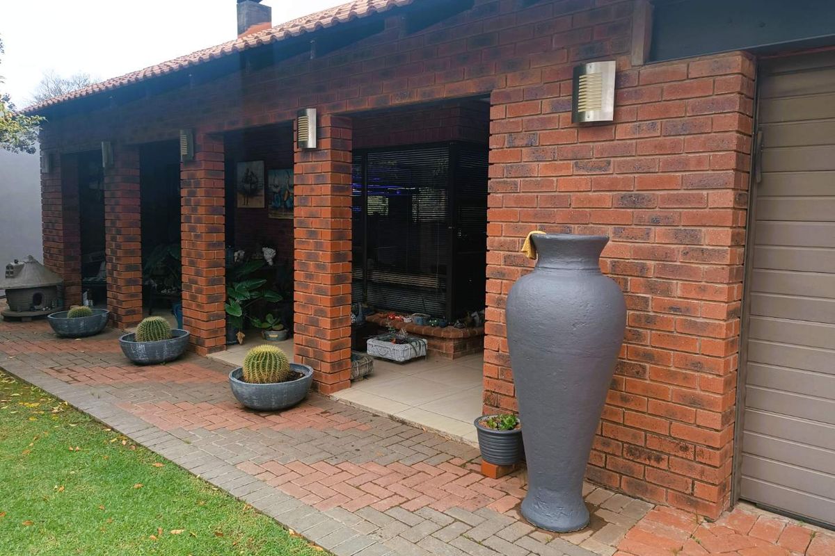 Step through the front door into a bright, airy open-plan living space, filled with natural light. The expansive layout includes a welcoming entertainment area with a built-in braai, a dining room, a cozy living room, and a well-appointed kitchen featuring ample built-in cupboards and a separate scullery.
