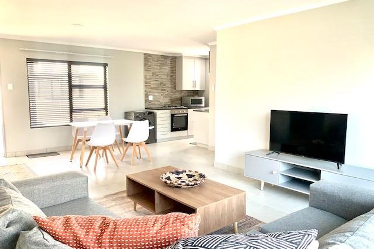 Family-friendly living in the heart of Pellissier, secure new townhouse development, easy indoor-outdoor flow to a private garden; modern kitchen with gas stove, three bedrooms, two bathrooms.