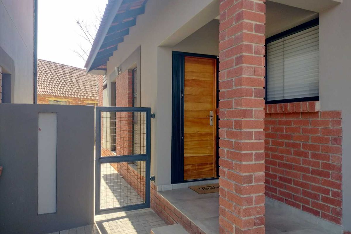 2-bedroom, 2-bathroom townhouse in a secure estate with open plan kitchen, garden, and double garage. Great rental potential.