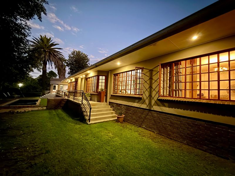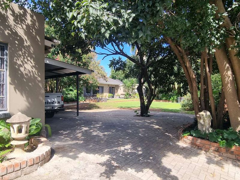 Relish old-world living on a quiet cul-de-sac steps from Oranje School for Girls, set on a vast garden with secret corners; former guesthouse with seven bedrooms, seven baths, five garages.