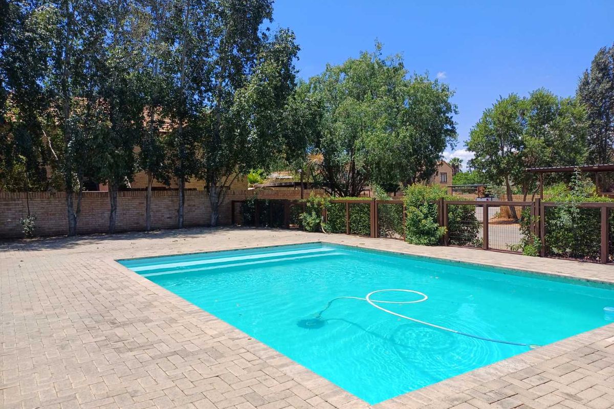2 bedrooms, 1 bathroom unit in Wilgehof, 101 m², with double garage and balcony. Pre-paid electricity, pool access.