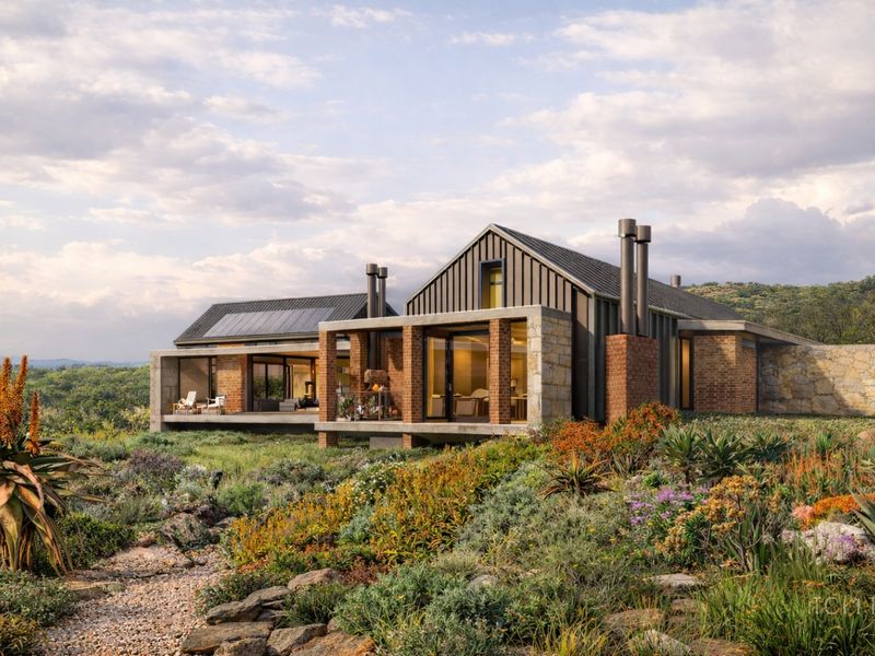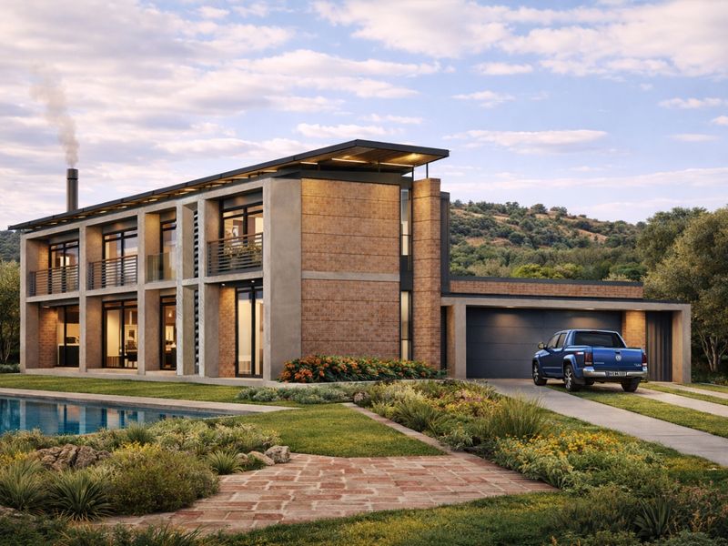 Refined modern living in Northern Bloemfontein's exclusive new estate, with double-volume dining, built-in fireplace and covered patio — three bedrooms, three baths, double garage.