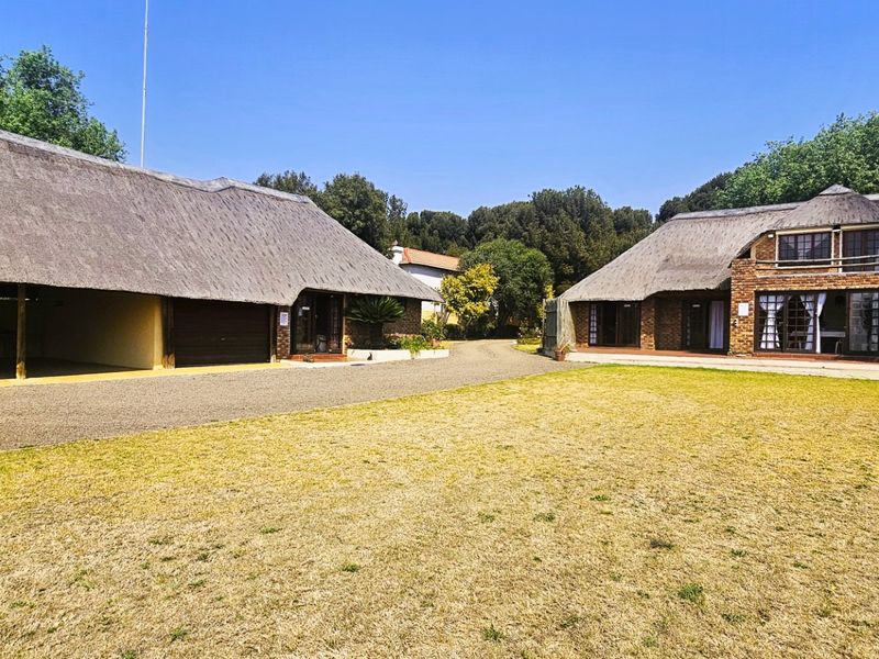 Waterside lifestyle steps from the Vaaldam, this thatch-roof home offers generous living, entertainment area with braai and built-in bar, pool and boma, plus three bedrooms, two baths and double garage.