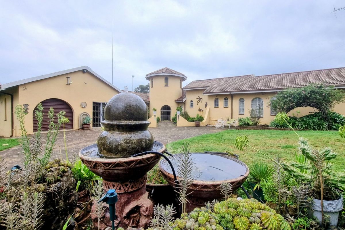 Outside there is a toolshed next to the vegetable garden and a bird cage add to the property's charm. An outside toilet and shower with its own geyser is also available. The property features a tandem garage with tip-up doors on both sides and additional parking for 2 cars under a carport. Four water tanks and a beautiful water feature add to the property's appeal. There's prepaid electricity. The fully walled yard ensures a secure environment, with an alarm system, outside lights, safety gates, burglar bars and a lock-up front gate providing peace of mind for residents.