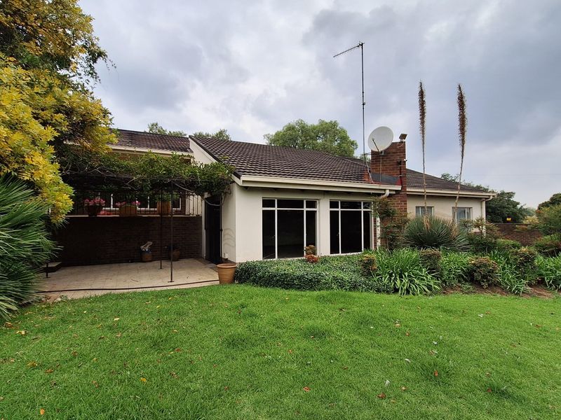 Peaceful neighbourhood retreat with relaxed indoor-outdoor living, expansive grounds featuring a private fish dam and lapa, pergola and built-in braai — includes four bedrooms, 3.5 baths and bachelor flat.