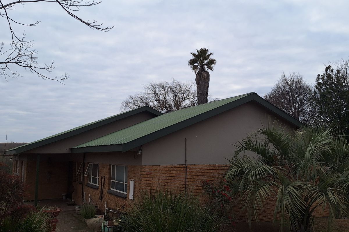 Relax on a Wilge River-view veranda with private braai in a quiet suburb; refurbished home features a striking concrete slab kitchen table, flexible living, three-bed/three-bath main house plus one‑bed flat.