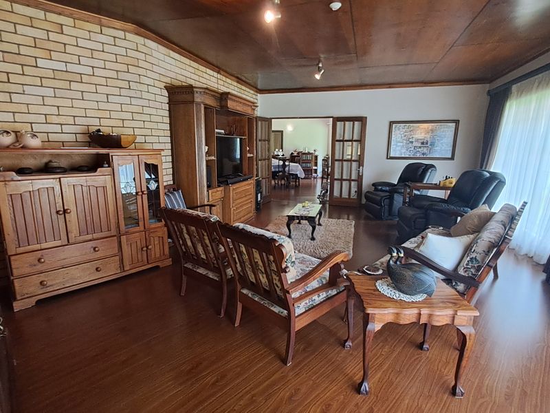 Perfect for guesthouse or family living, set in a peaceful garden setting with enclosed sunroom, two furnished flats, two stands, five bedrooms, four baths and three garages.