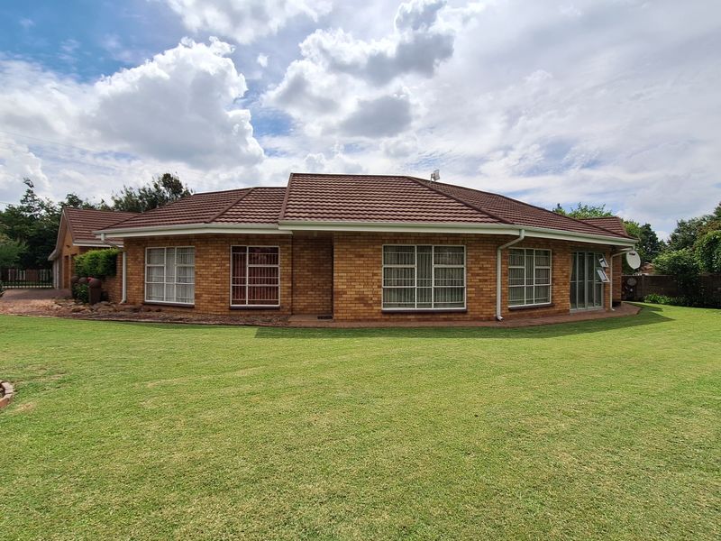 Wake up to Vaal River mornings and endless water views from an expansive deck and pool; riverside living on 1 ha with lush gardens, three bedrooms and single garage.