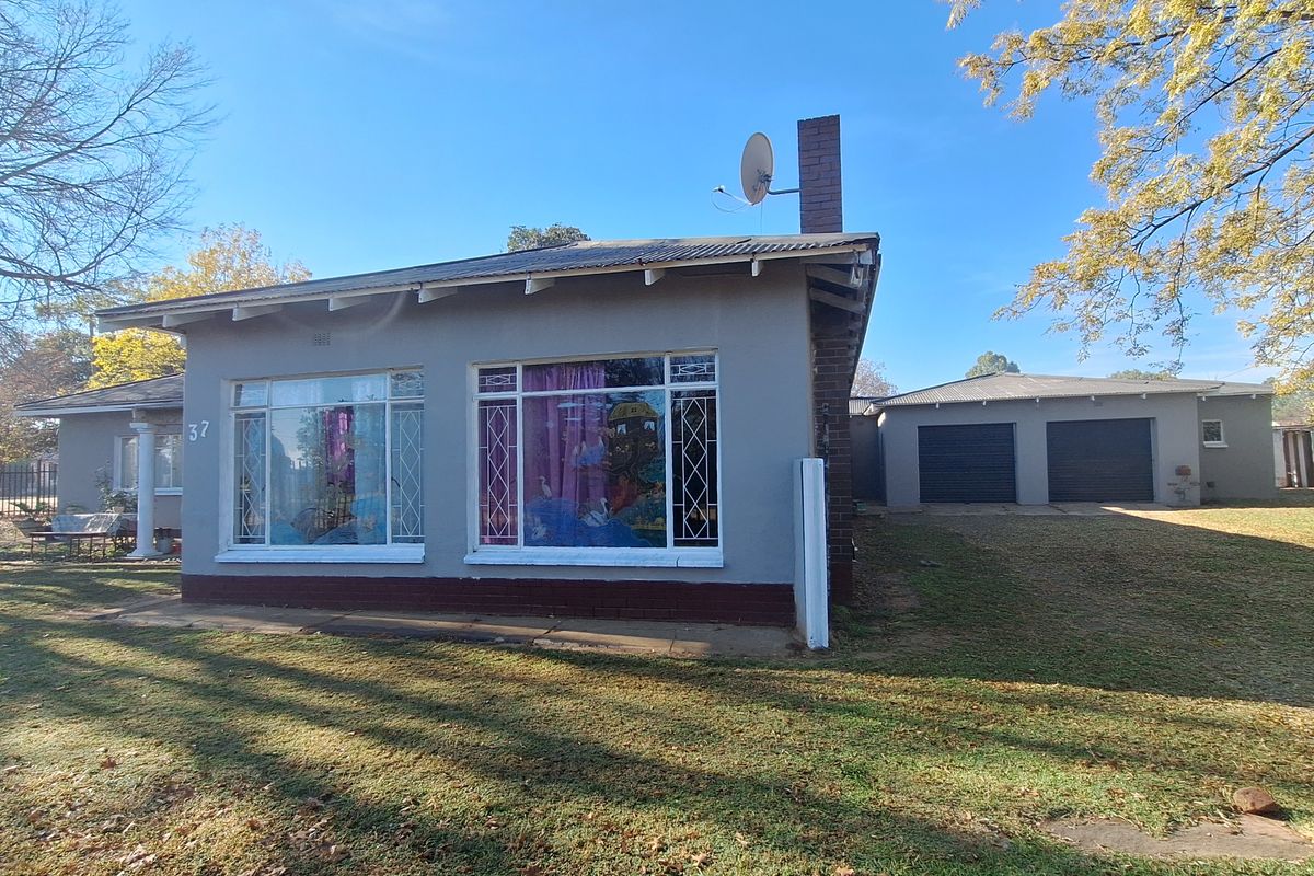 Tranquil Villiers corner stand with established trees, perfect for a treehouse. Sunlit living room with fireplace, secluded stoep and vintage coal stove; close to local school, five beds.