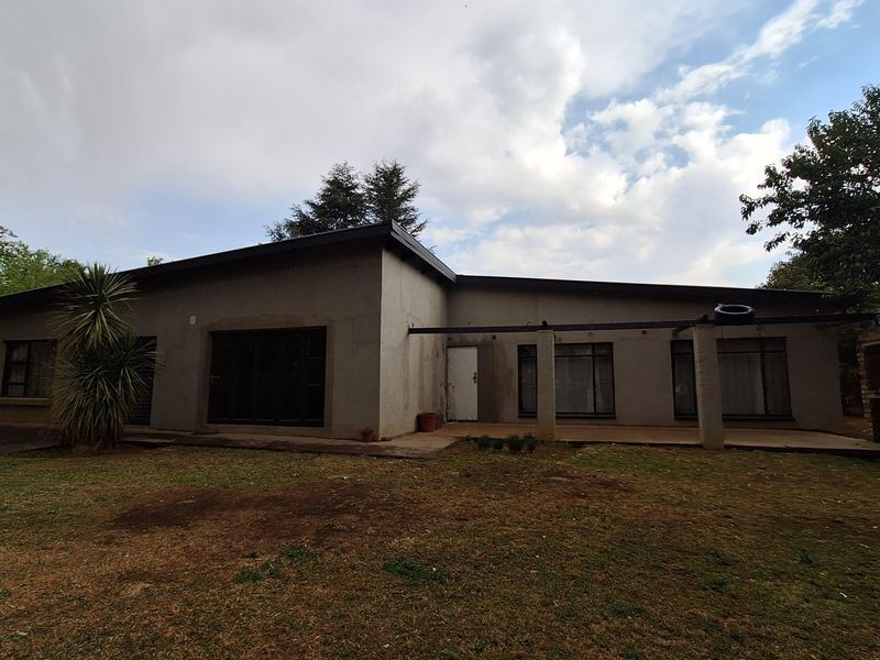 Tranquil Villiers corner stand with established trees, perfect for a treehouse. Sunlit living room with fireplace, secluded stoep and vintage coal stove; close to local school, five beds.