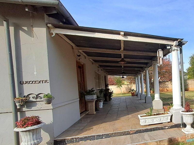 Relaxed family living near Parys shopping mall with a shaded verandah and maintained garden, open-plan lounge, separate scullery and one-bedroom flatlet—three beds, three baths, double garage.